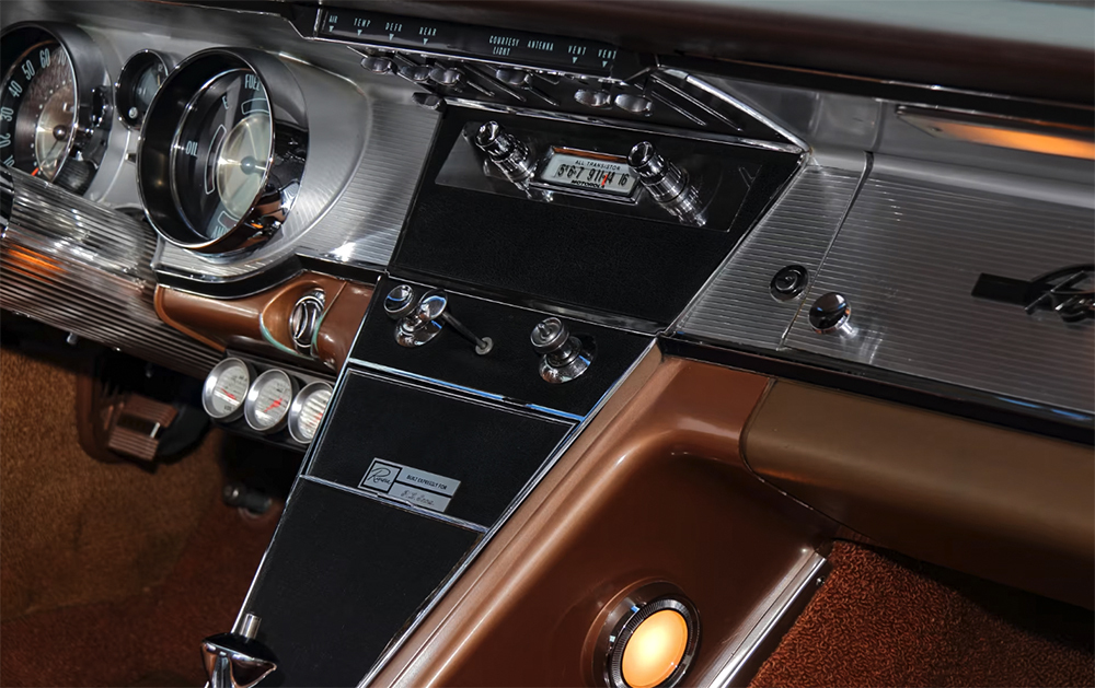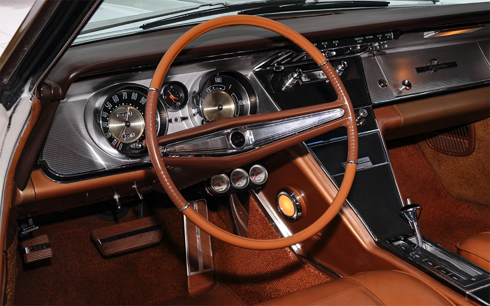 Inside, the 1963 Riviera featured a richly appointed cabin configured for four passengers. Standard were bucket seats front and rear, divided by a full-length center console with integrated storage and a floor shifter. Upholstery choices included vinyl, cloth/vinyl, and optional leather, while the deluxe interior package offered real walnut wood trim in the doors and rear quarter panels.